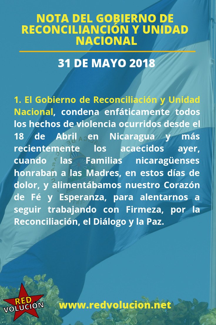 #NicaraguaQuierePaz#QueremosLaPaz ¡COMUNICADO! Nota de Prensa del Gobierno de Reconciliación y Unidad Nacional. COMPARTE pic.twitter.com/pefaOeXaunEste contenido multimedia puede incluir material que puede herir la sensibilidad de algunas personas. Más información