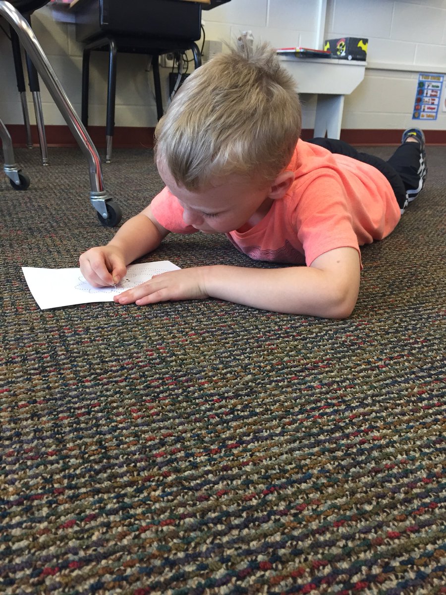 One friend showing us static electricity from the recess slide, first day at kitchen center, and cutting practice...it is easier on the floor!