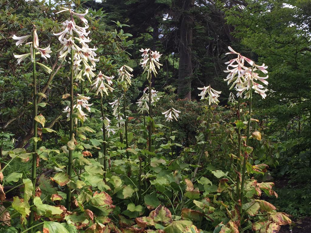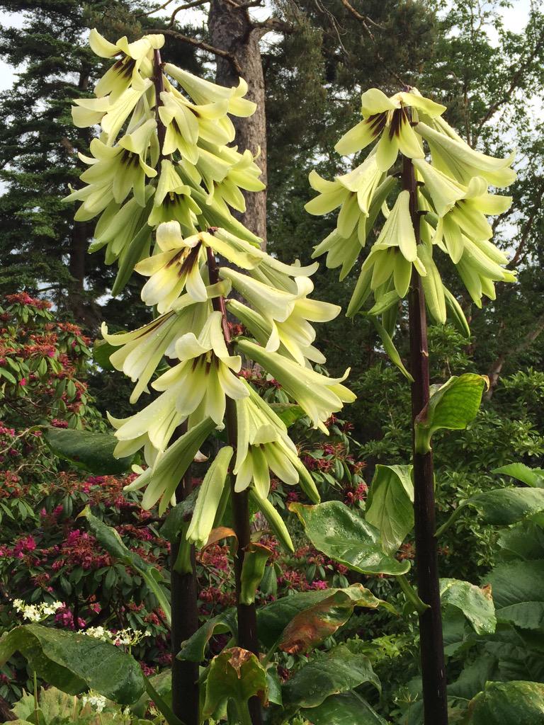 The giant Cardiocrinums making a statement in WG 2 species giganteum & var yunanensis red marking