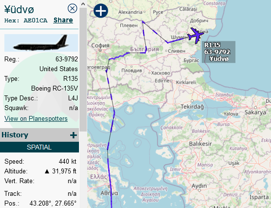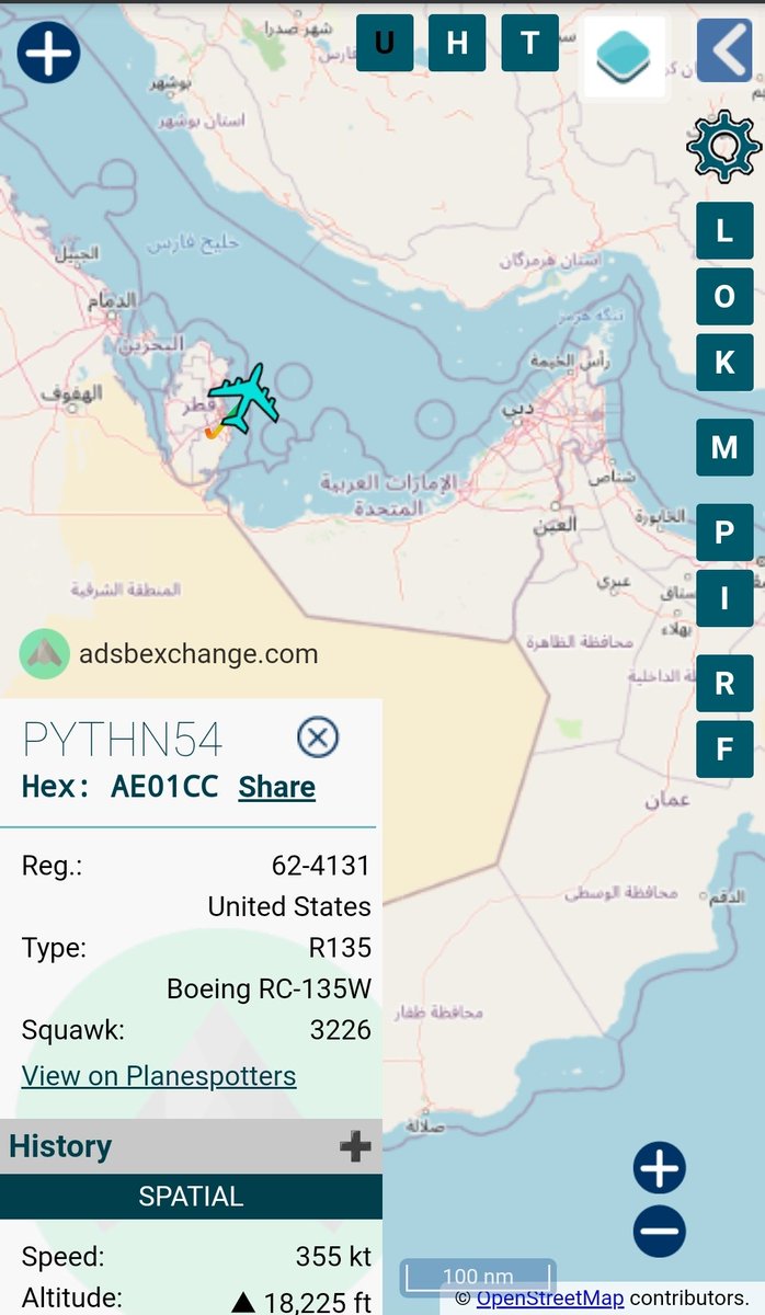 #RC135 Rivet Joint 64-14841 PYTHN55 over Persian Gulf now pic.twitter.com/wICiR5dWsf
