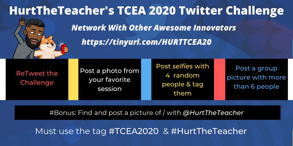 #TWITTERCHALLENGE time. Get ready 2 tweet, network & selfie w/ rand people. Start w/#retweeting the challenge and get ready for a perfect opp to connect w/other educators who share common interests.#tcea#tcea2020#tcea20@tcea#Instech#EdTechpic.twitter.com/NqiHanM67T