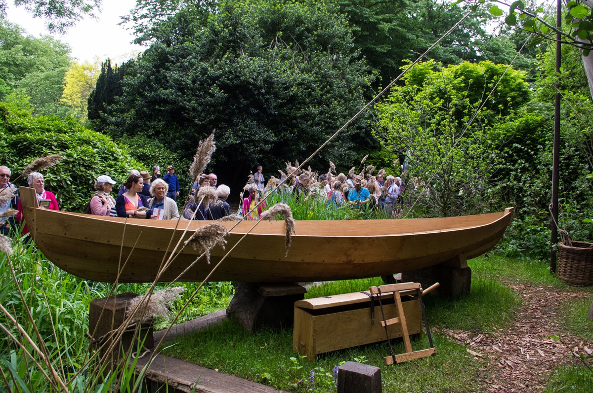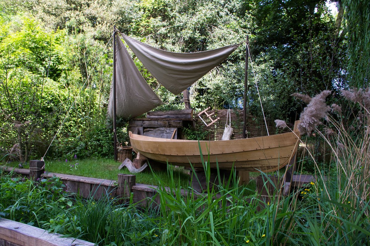 @ibtc_uk garden at#RHSChelsea designed by@beehiveyard. It says: "From Tree to Sea". Amazing wooden boatpic.twitter.com/498FSn76Nb
