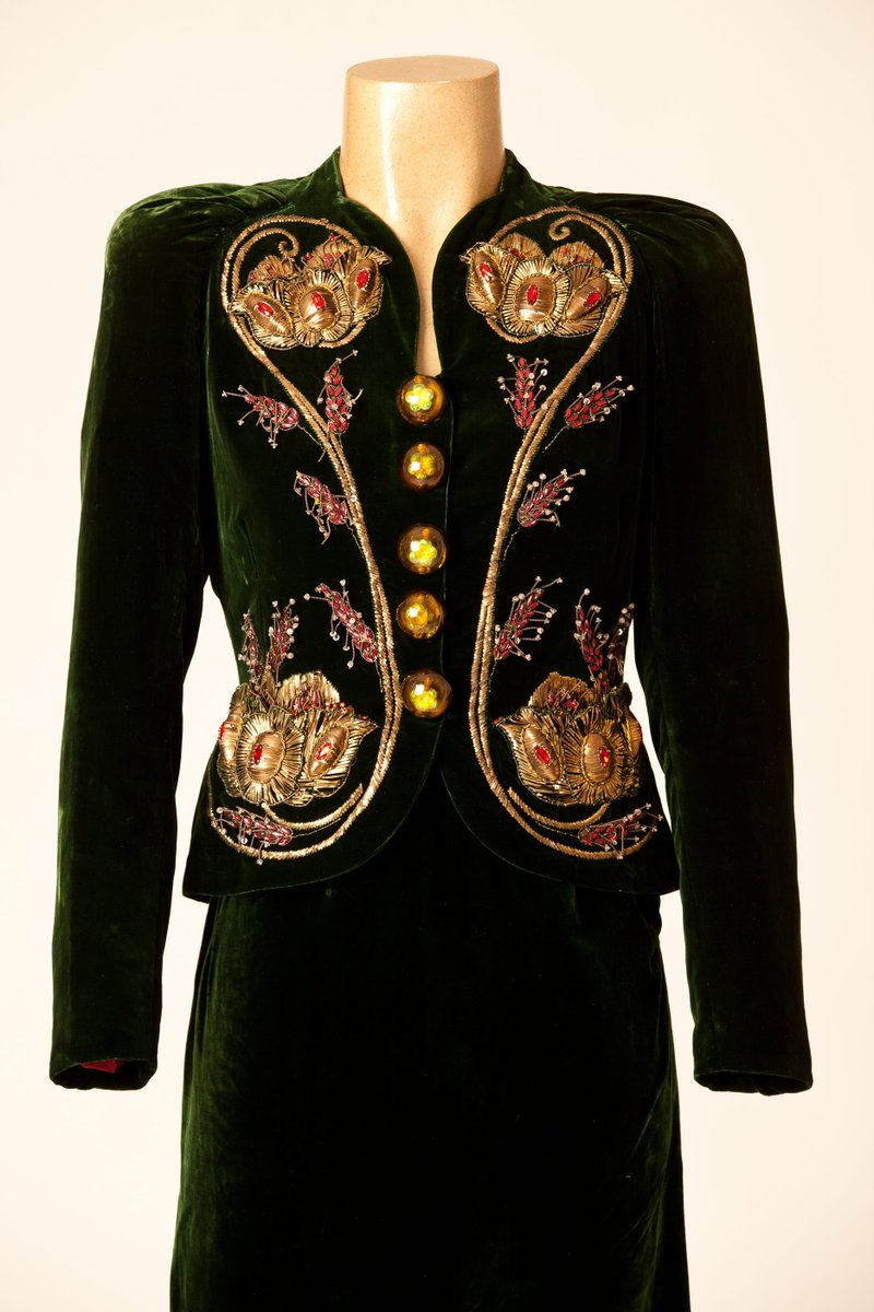 Friday treat time! Dark green silk velvet jacket with metal thread embroidered flowers, Schiaparelli 1938