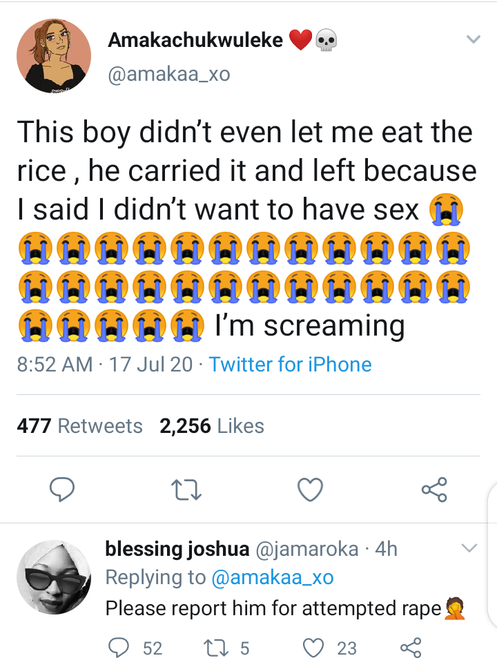 Normalize not weaponizing rape and false allegations altogether. It's becoming a norm with twitter often used to serve online jungle Justice.