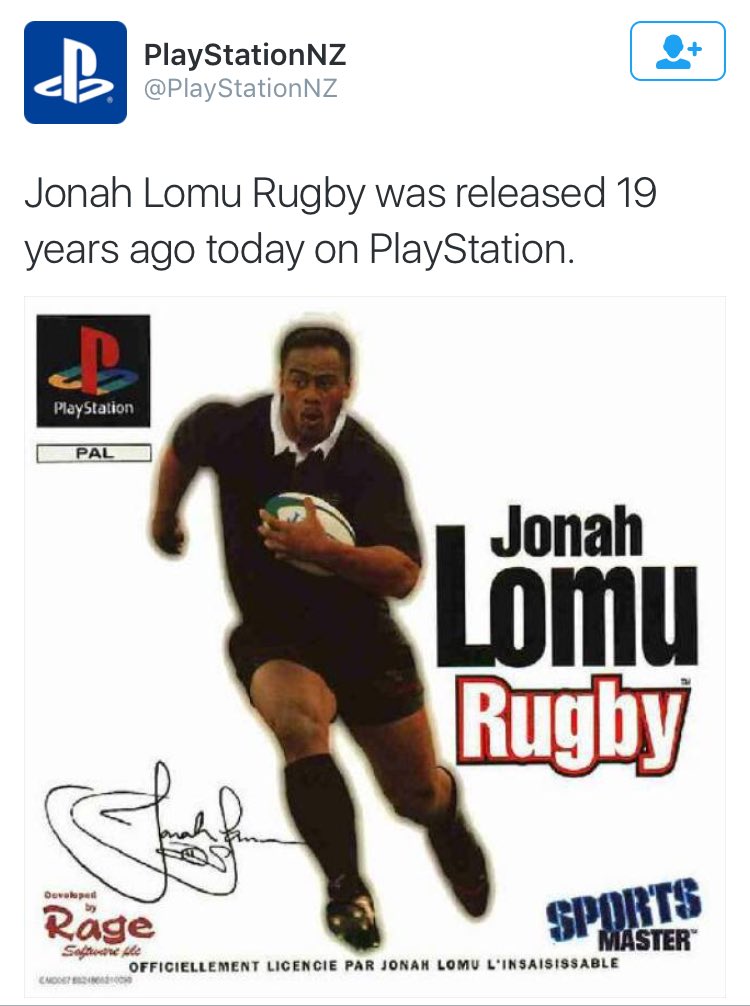 PlayStationAustralia @PlayStationAUJonah Lomu Rugby was released 19 years ago today on PlayStation. https://www.instagram.com/p/BDmkmvblKR5/0 retweets 2 likes -