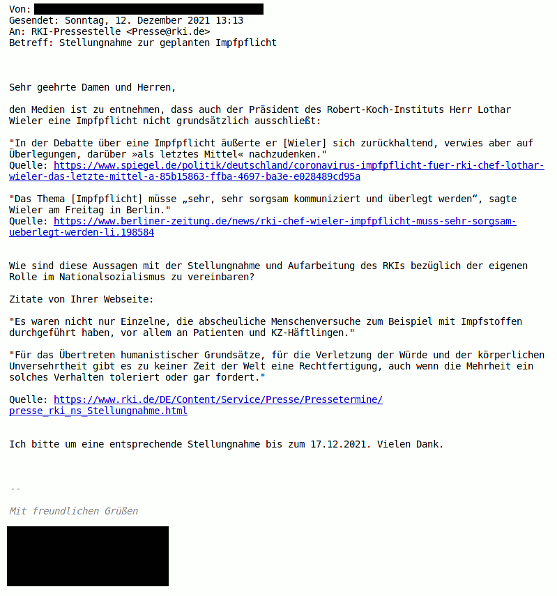 @rki_de, wie die Aussagen von Lothar Wieler zu einer#Impfpflicht mit der Stellungnahme des#RKI's bezüglich der eigenen Rolle im Nationalsozialismus in Einklang zu bringen sind. Bereits vom Dezember 2021. Anfrage, 1. Antwort, Nachfrage, 2. Antwort pic.twitter.com/6l7hqfkd5V