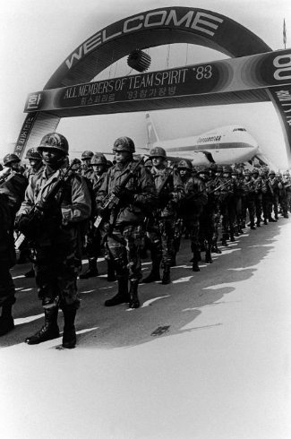1950 to 53 - Korean War - 187th (Airborne) Regimental Combat Team making a jump! Photo courtesy of NARA!