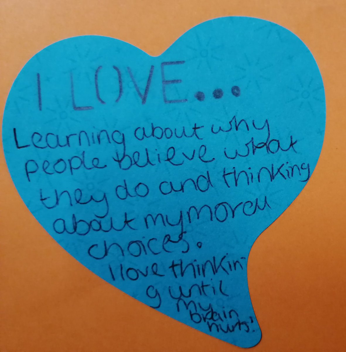 Some of the reasons this GCSE RPE student decided to take this subject. "I love thinking until my brain hurts".