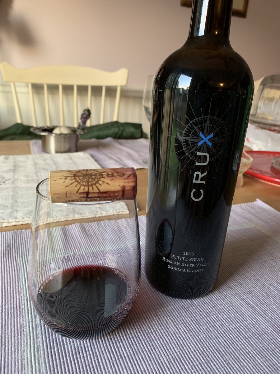 @cruxwinery Petit Syrah#RRV Cocoa, tea, blackberry jam, and a zippy little finish. Quite a lot of finesse compared to other PS bombs I’ve had. Delicious