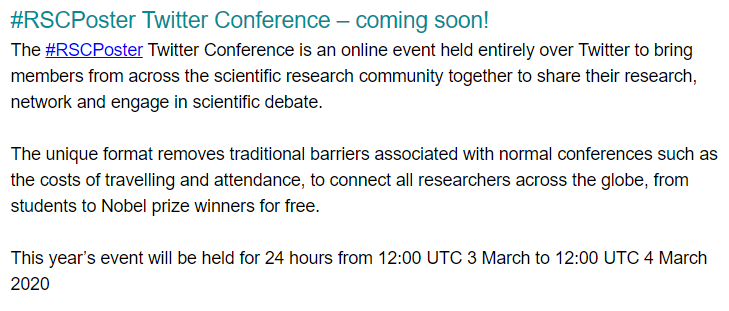 #RSCPoster Twitter Conference (March 3 and 4!) https://www.rsc.org/events/detail/43176/ … -
