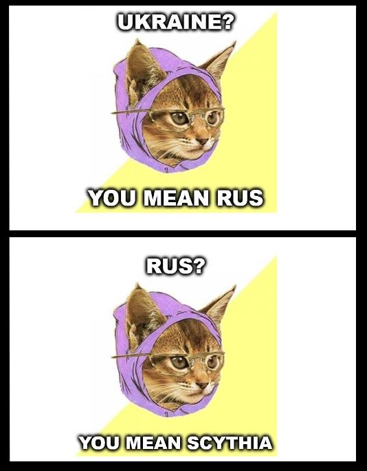 . Hipster Kitty says "Ukraine? You mean Rus" "Rus? You mean Scythia" .
