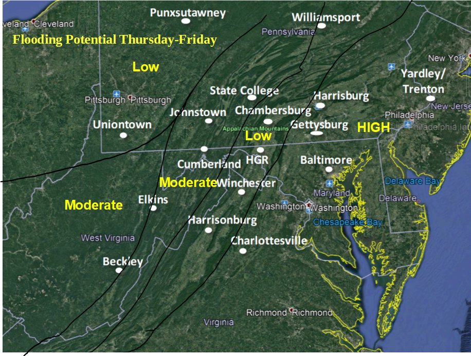 #rain event will lead to#flooding in spots across the Mid-Atlantic later this week. Here's a look at the regions that will be most impacted by high water.pic.twitter.com/F07GF3Rqkf