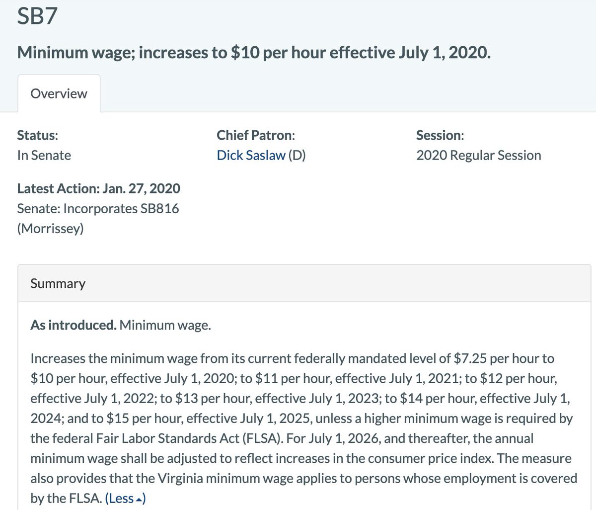 SB7 is too slow for Virginians who need a living wage for their work now. We should be leading the way on this issue, not dragging behind and waiting for the federal government to act