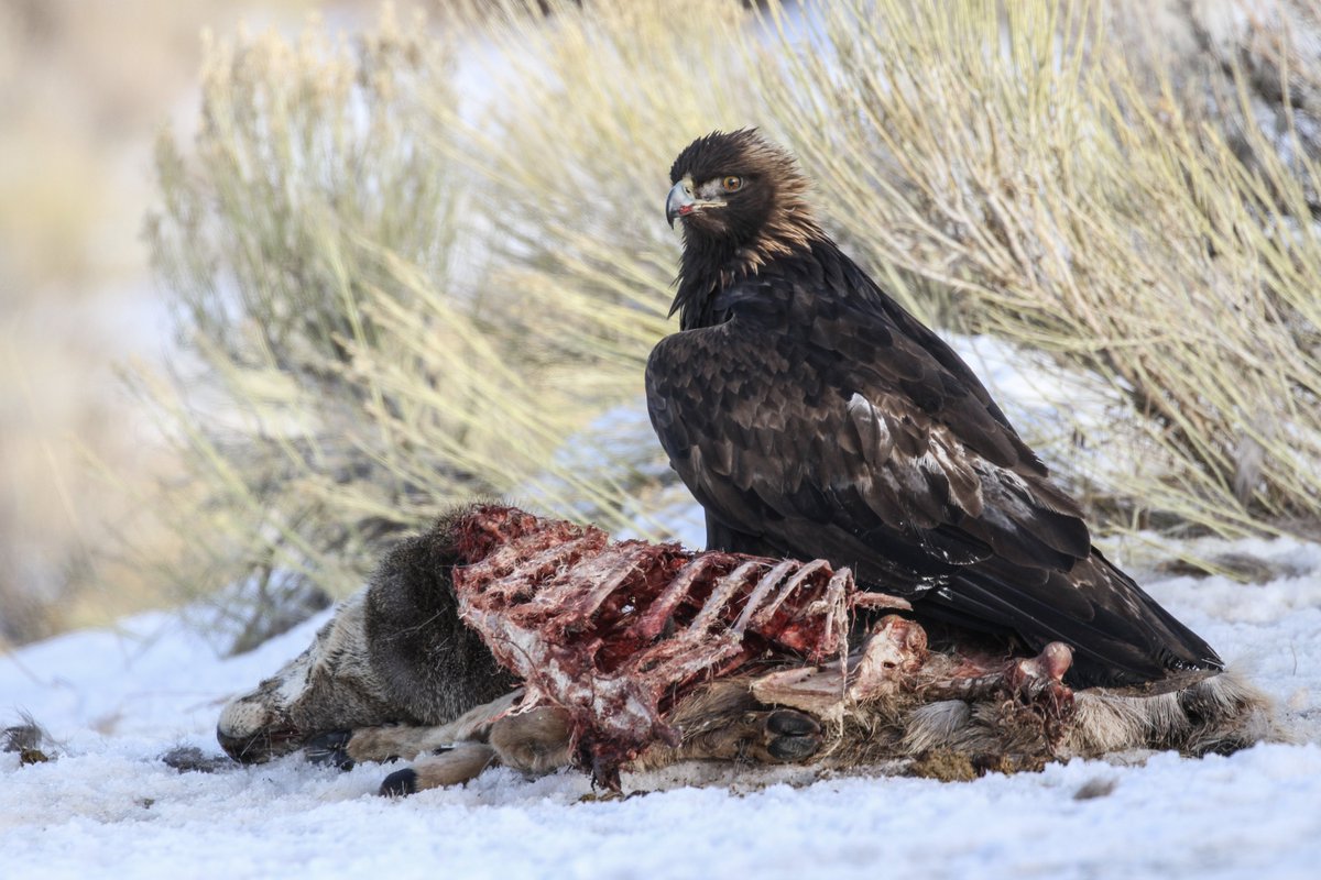 #GoldenEagle feeding on a#roadkill mule#deer in#Utah yesterday.#Eagles are often struck by cars when feeding on roadkill.@hawkwatchint is leading a multi-state effort to study such impacts in the American West.#scavengerecology#raptorresearch pic.twitter.com/v6MoUyLUkG