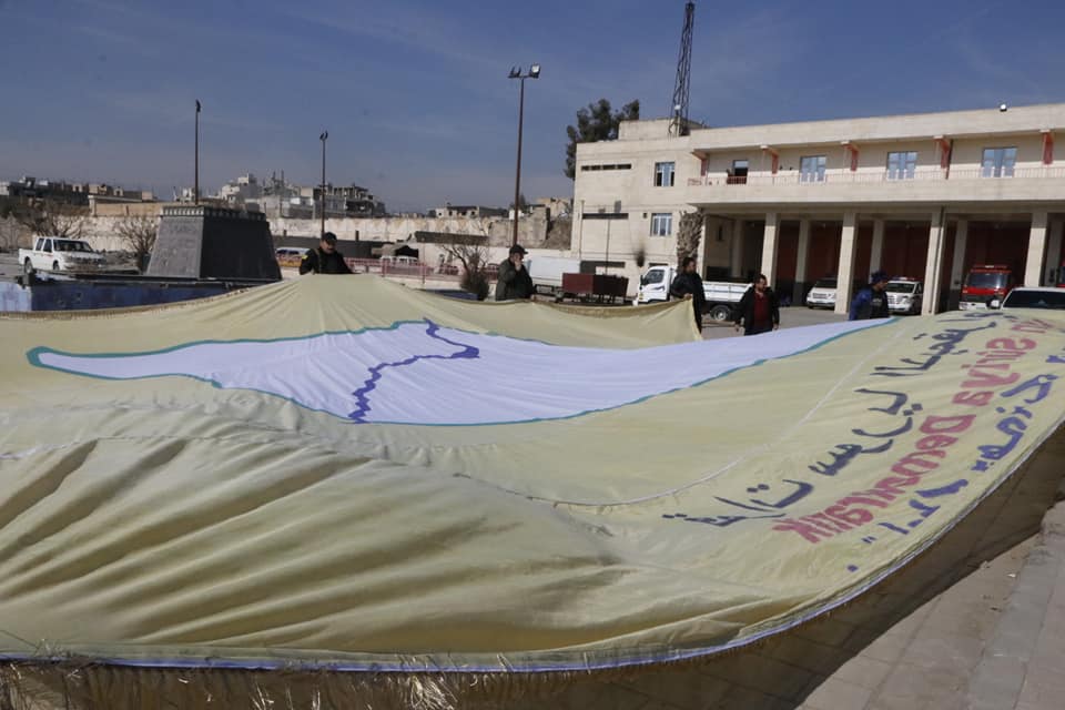 #Raqqa: The Raqqa City Defense Office worked to hang the flag of Syrian Democratic Forces in downtown Raqqa. pic.twitter.com/GDo5aL0bqBOvo je potencijalno osjetljiv multimedijski sadržaj. Saznajte više