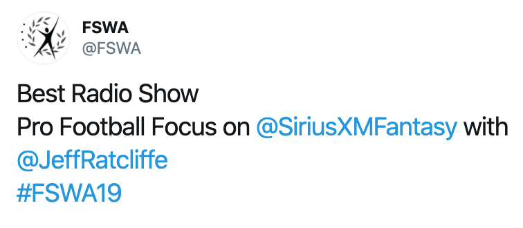 @FSWA awards. Put my heart and soul into my work and it feels really freaking good to be recognized by my peers. Couldn't have done it without the excellent teams at PFF, SiriusXM, and CBS. And a HUGE shout out to the#RatPack