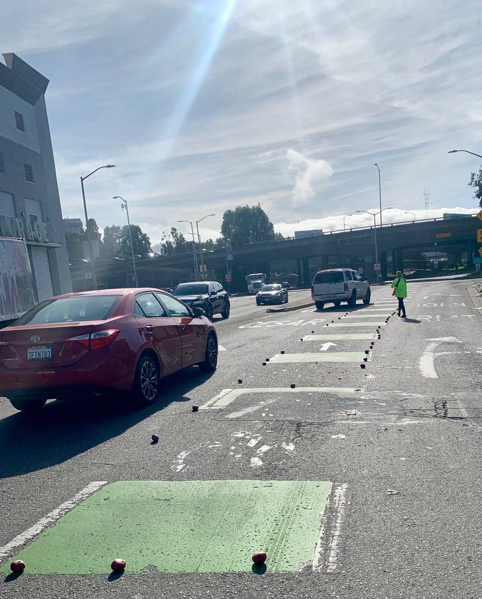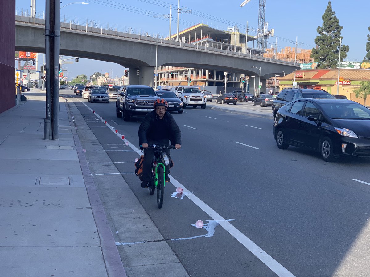 #RedCupProject (@darsal) on Cesar Chavez in SF tonight. A commuter enjoys the Potato Protected Lane for 5 minutes before cars destroyed it at 50mph. This lane is perilous and needs protection. @shamannwalton @sfmta_muni @LondonBreedpic.twitter.com/E2d3cRO1DQ