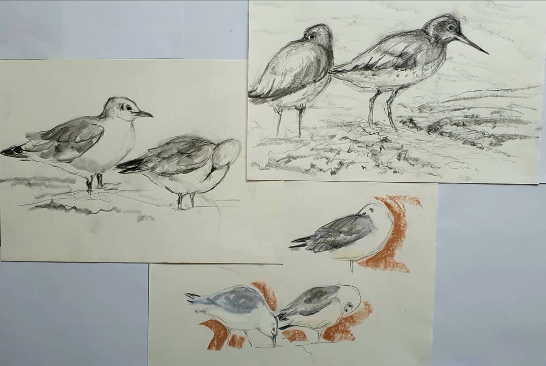 Redshank & Black-headed gulls from last week’s drawing days along the Thames Estuary, Rainham. Looking forward to my next visit.
