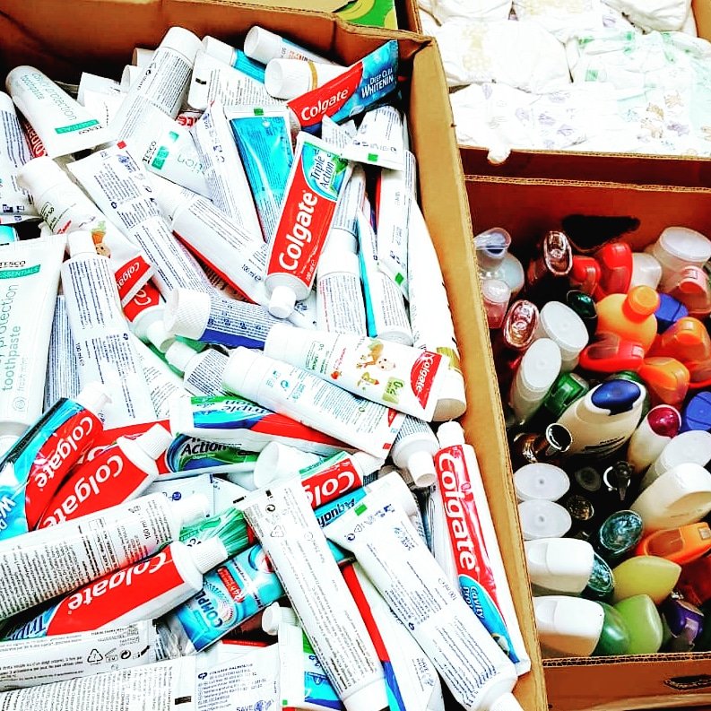 #humanitarianaid has never been greater. Thank you to#HelpRefugees for sending boxes and boxes of life's essentials for families in our community. We will distribute the items this week. One Love!