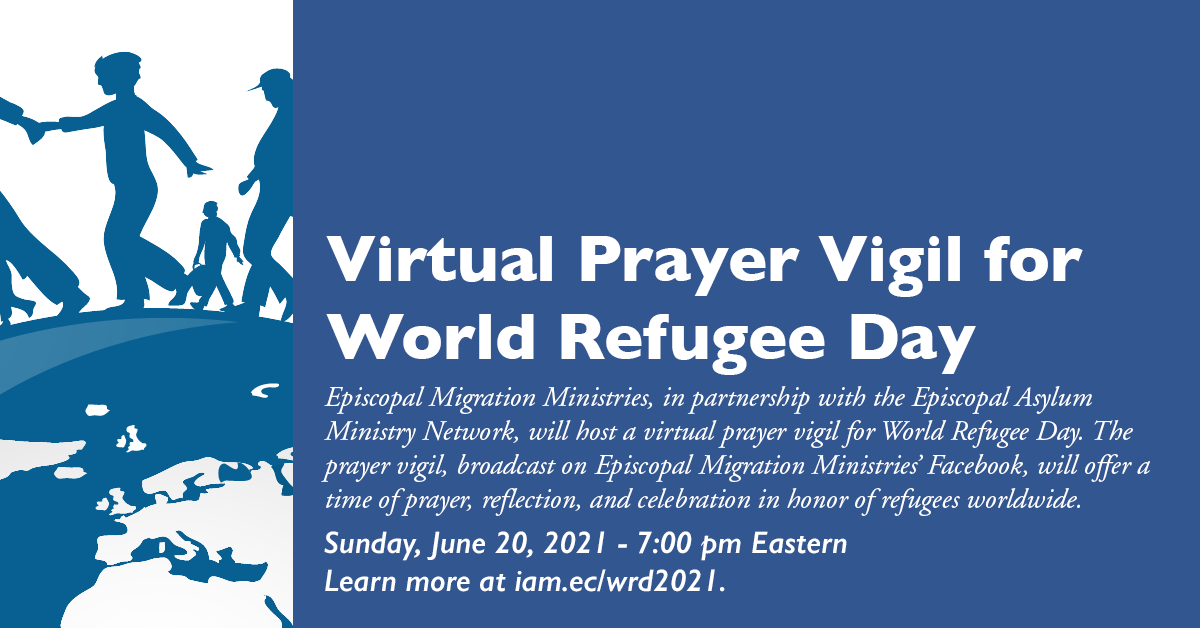 #Episcopal Migration Ministries will host a virtual prayer vigil for World Refugee Day on Sunday, June 20, 7:00 – 8:00 pm Eastern. Learn more at http://iam.ec/wrd2021 .#RefugeesWelcome pic.twitter.com/GxZsQuvO1I