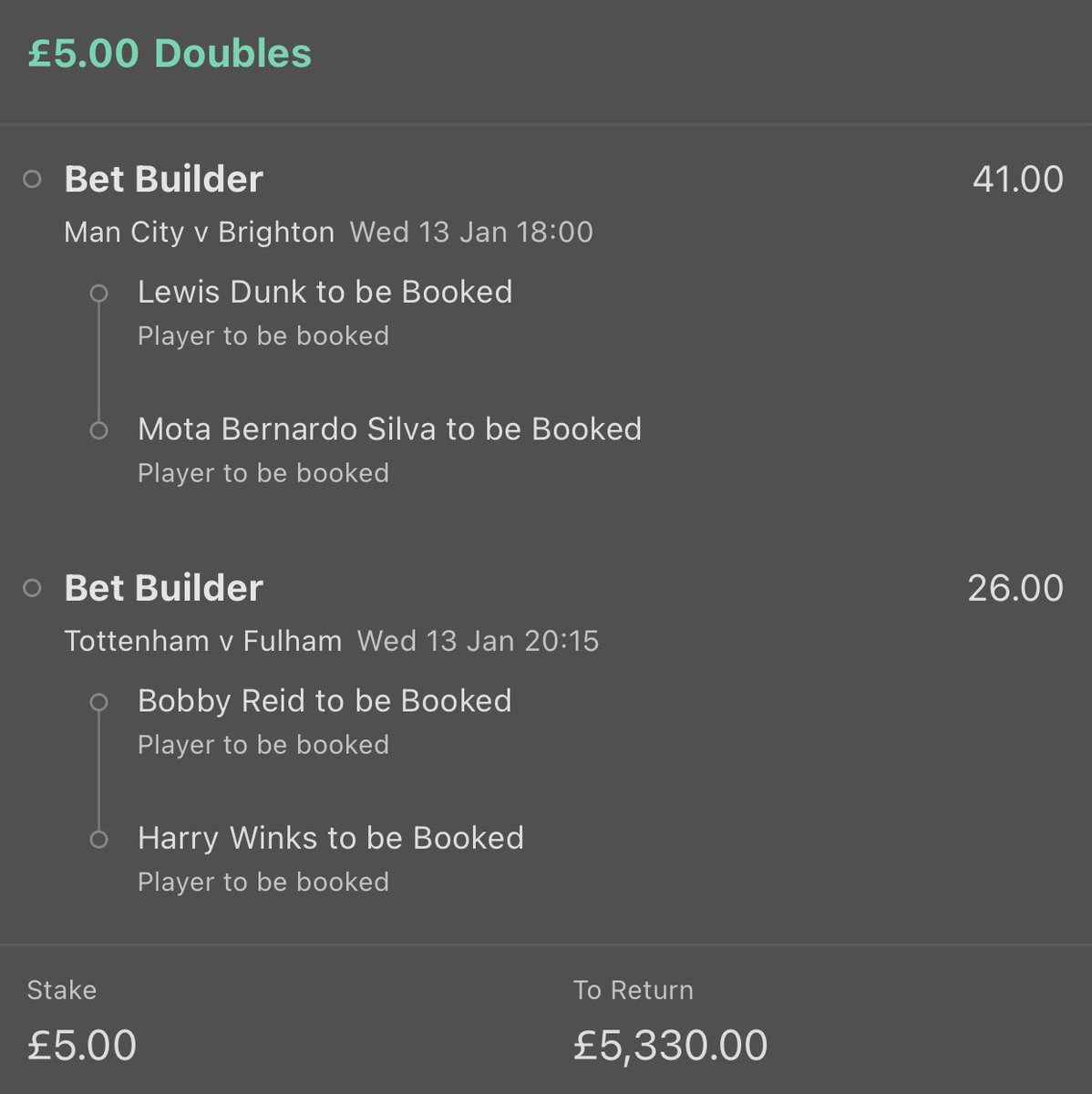 £5 returns £5,330 on @bet365#tip#tipster#bettingtips#betting#footballtip#goalscorer#sport#bets#bet#football#GoalscorerAcca#Acca#sportsbetting#gambling#PL#epl#dunk#silva#reid#winks#MCIBHA#TOTFULpic.twitter.com/wcFsWOSzTW