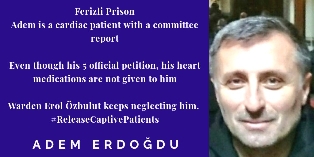 Adem Erdoğdu Ferizli prison Adem is a cardiac patient with a committee report Even though his 5 official petition, his heart medications are not given to him Warden Erol Özbulut keeps neglecting hım