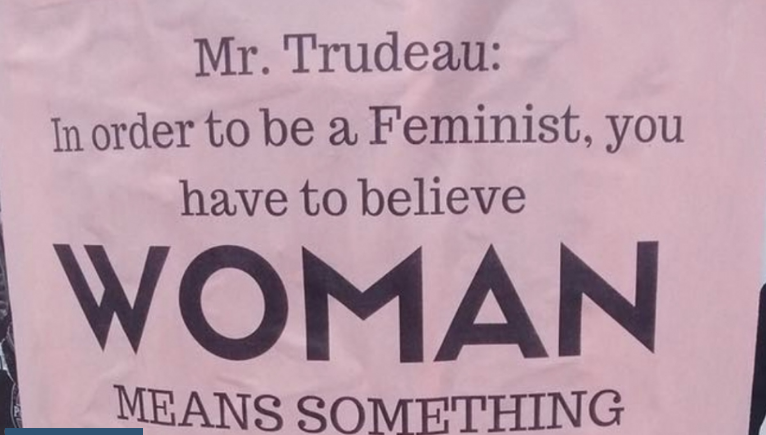Four years ago I was called a bigot & compared to a Neo-nazi because I ran a poster campaign in Vancouver stating: Mr. Trudeau, in order to be a feminist you have to believe WOMAN means something. High time, Mr. Trudeau, to show that you actually care about women.