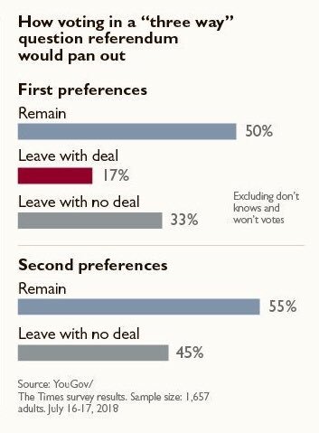 #Remain majority in a new Brexit referendum, latest poll shows. The public would now vote to Remain by 55% to 45% in a “three way” question referendum, according to tonight’s@YouGov poll for The Times.#StopBrexit#PeoplesVotepic.twitter.com/bLMWrzpg28