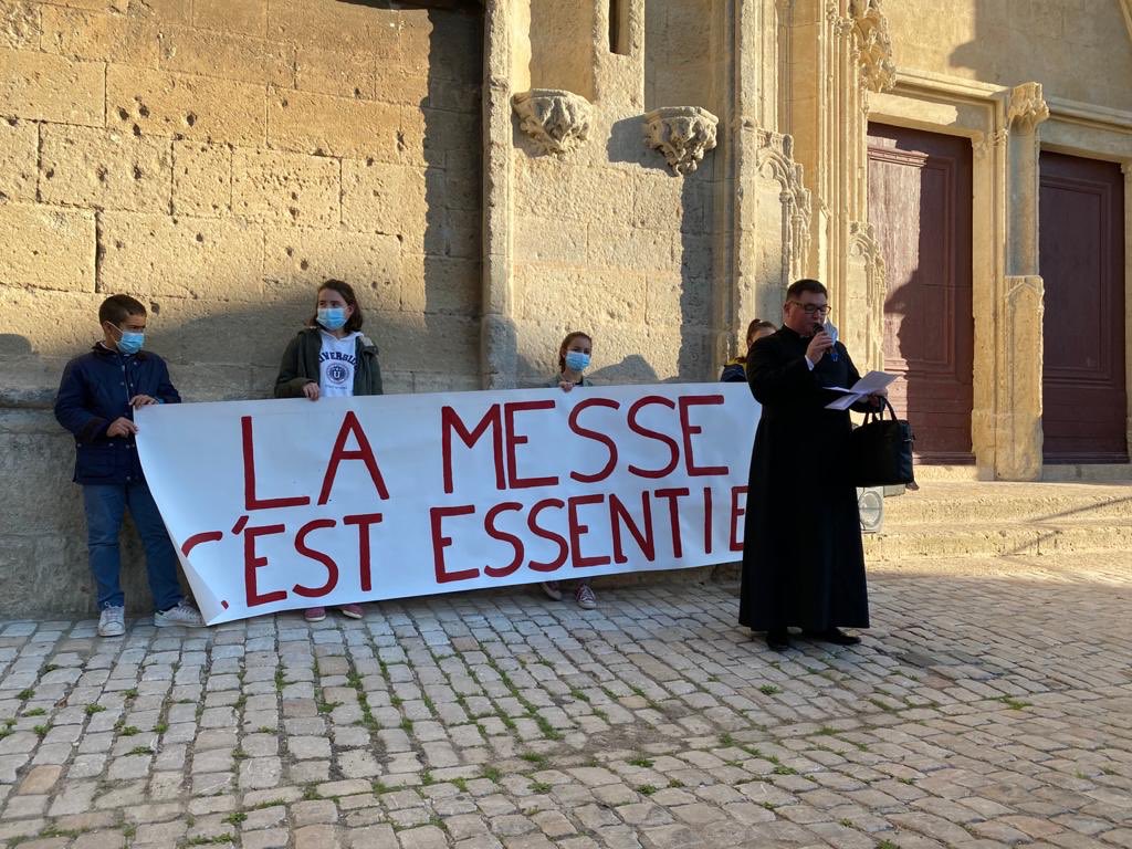 La messe, c’est essentiel. À Béziers, 180 personnes demandent à nos gouvernants la possibilité d’y participer. Le rassemblement se termine par une dizaine d’Ave dont se dégage joie et fermeté.
