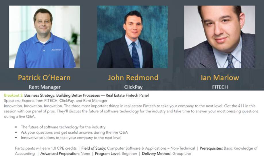 #IanMarlow,#JohnRedmond and#PatrickOHearn at 2:15pm!#FITECH@ClickPay1#RentManager#FTPartners#REVCHI18pic.twitter.com/edfPEGEUc2