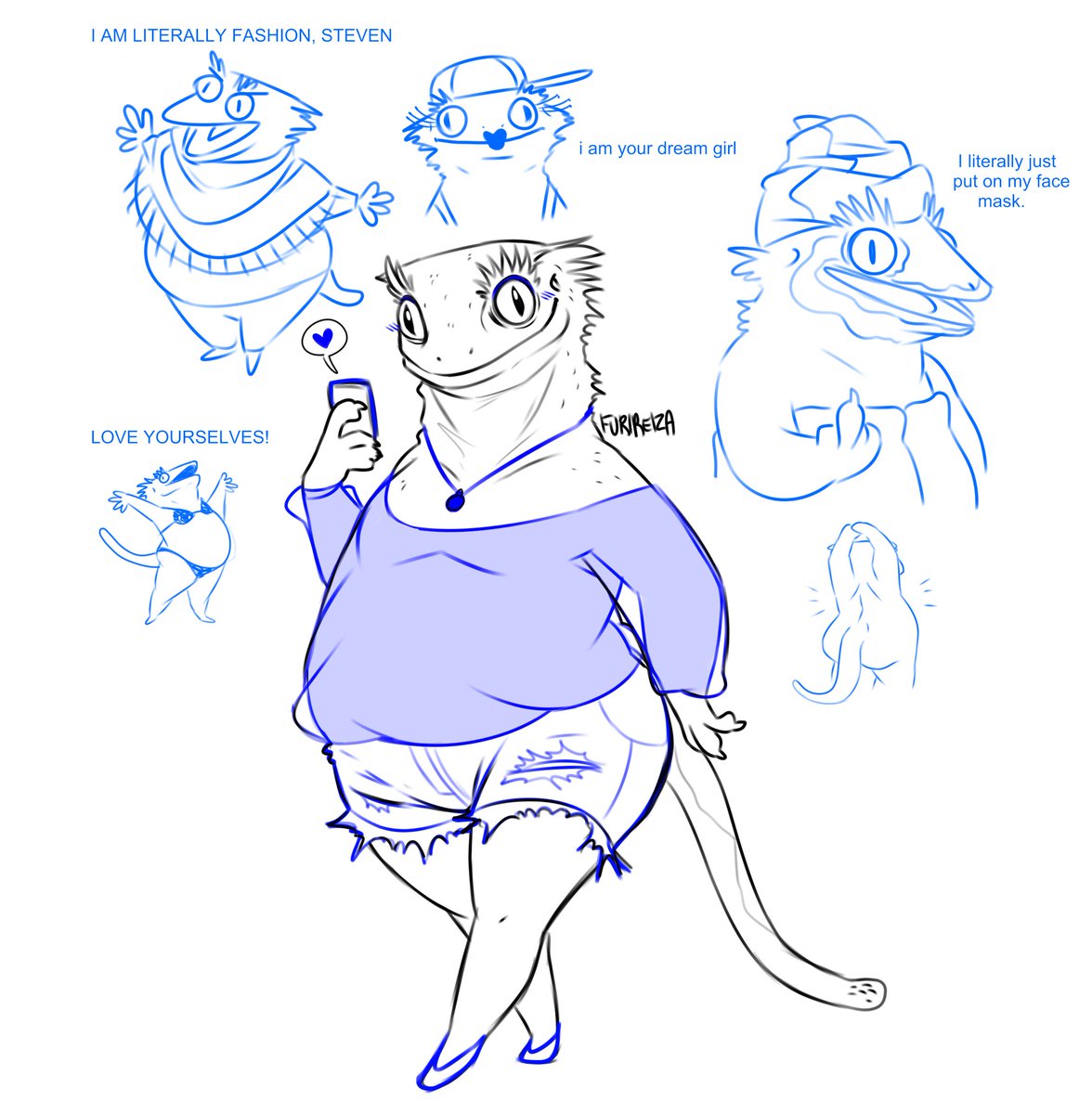 I drew my fat gecko as an instagram girl.