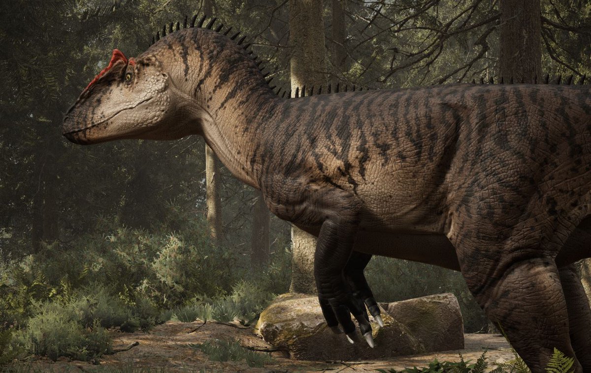 #Allosaurus species! This is the new#jimmadseni model, with a longer and narrower skull, and a speculative row of spines down its back!#dinosaurs#reptiles#pathoftitanspic.twitter.com/7aR9fB10I2