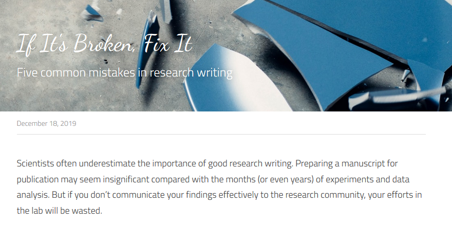 My latest blog article explains how to fix five common mistakes in research writing: https://www.baconediting.com/blog/if-it-s-broken-fix-it …