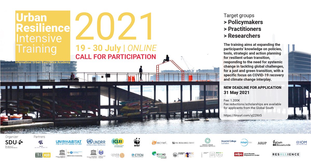 Call for Participation: Urban Resilience Intensive Training 2021 Extended deadline for application > 31 May 2021 19 – 30 July | ONLINE Read the Call for participation here: https://tinyurl.com/yj22l6t5