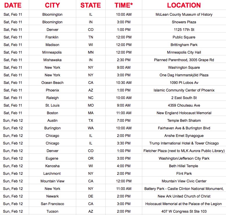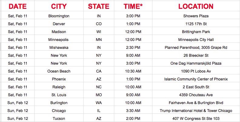 #ResistTrump rally near you! https://docs.google.com/spreadsheets/d/1BHLcMeNwk779OHpYjvMRqDQKXiJAqsmhkvrYQzU8CtE/htmlview …pic.twitter.com/CVZPAA6MPC