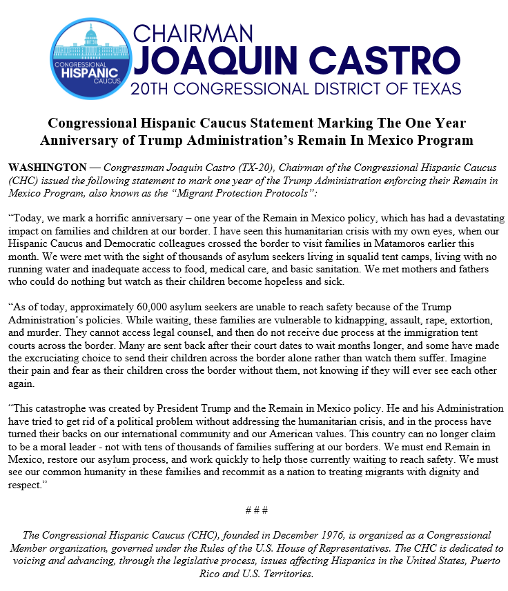 #RemainInMexico policy is a racist attempt to make it harder for migrants to seek asylum in the United States.#DontLookAway from the trauma this policy is inflicting on migrants and put pressure on this administration to#RestoreAsylumNow. https://twitter.com/HispanicCaucus/status/1222603550125101057 …