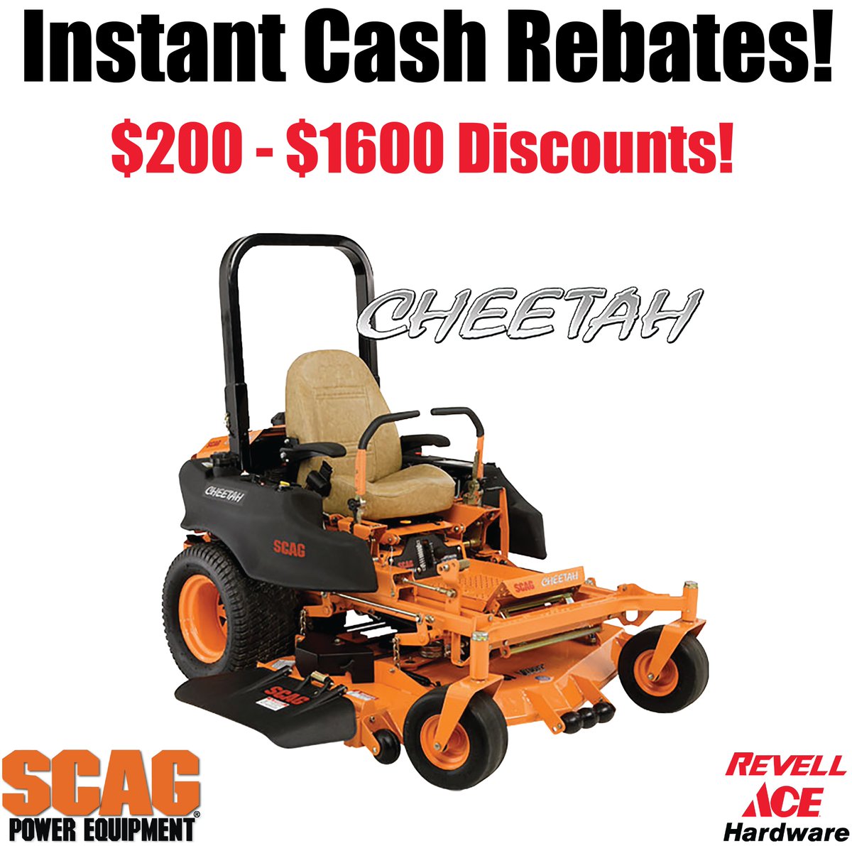 Shop with us now and get INSTANT CASH REBATES on select SCAG models! Discounts range from $200 to $1600, prices won't last long!! SCAG models are available at these locations: Revell Rental and Outdoor, Richland, Byram, and Clinton.