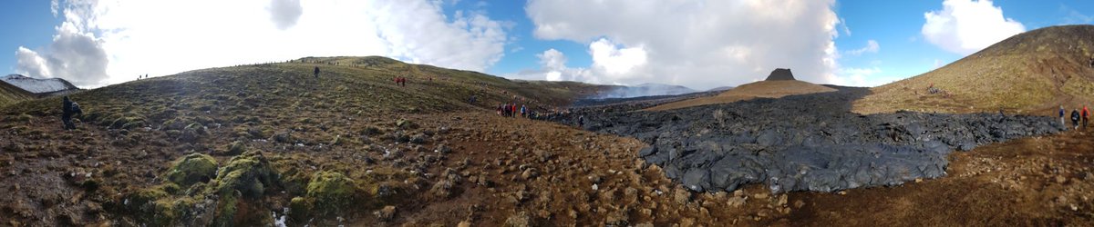 180° panorama shot of #Geldingadalur and Sydri-Meraldur euption site in#Iceland. At the right the currently active crater.#IJsland#Reykjanes#Fagradalsfjall#Fagradalsfjalleruption#volcano#eruption#volcanism@YoushowmeP@ThePhotoHour@StormHour@PanoPhotospic.twitter.com/m90lAwff8z