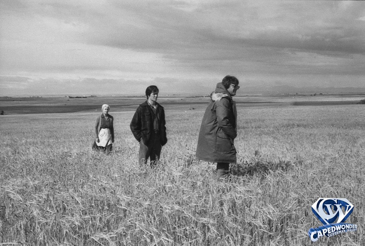Phyllis Thaxter, Jeff East, and Richard Donner in Alberta, Canada in August 1977.