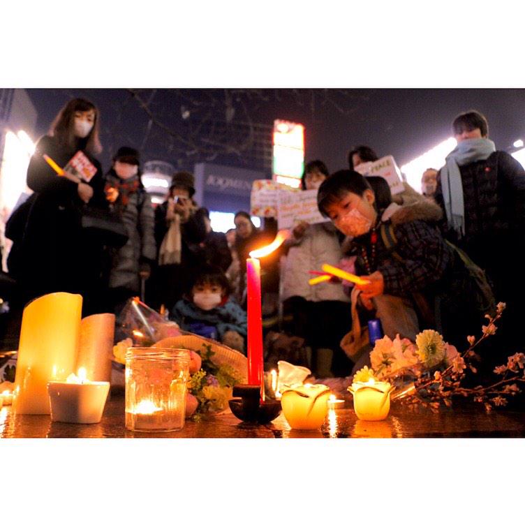 渋谷ハチ公前で行われた後藤さんと湯川さんの追悼集会。いつも賑やかな場所にロウソクの火が灯され静かで暖かい空気に包まれてました。