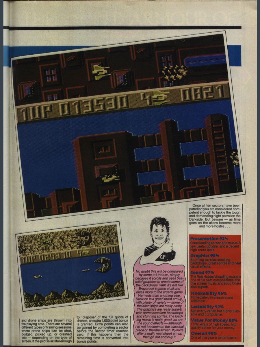 93% for Sanxion by Thalamus in ZZAP!64 November #1986 Lovely game and the most amazing