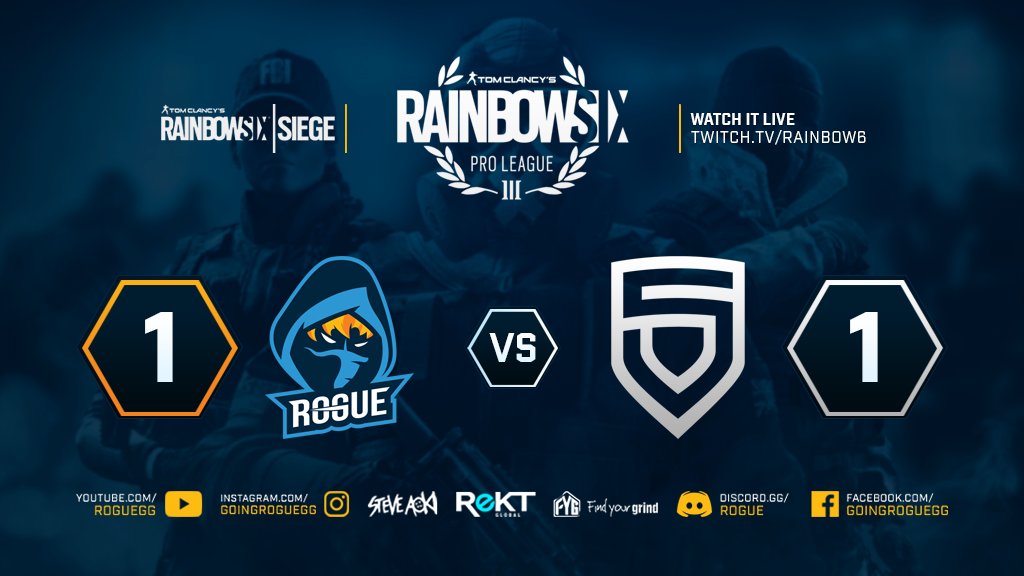 #RogueR6S is going live in their second match of the week in the@ESLRainbowSix Pro League against@ObeyAlliance.