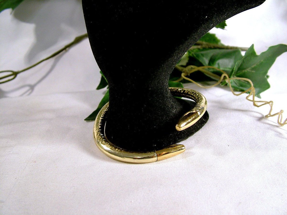 Vintage Art Deco Smooth Hand Stitched Rolled Gold Bridle Leather Serpentine Snake Cuff Bracelet http://tuppu.net/56246d23