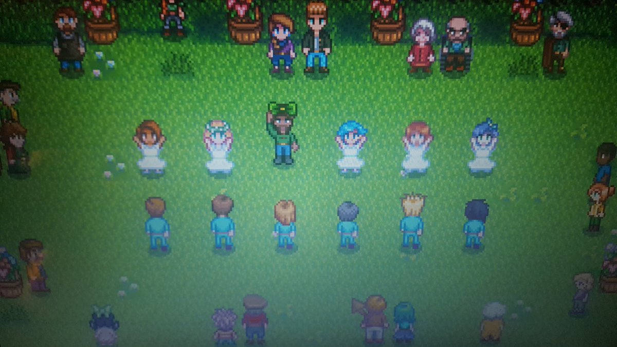 The only thing bringing me a modicum of joy is my Stardew Valley farmer Bowie finally getting to do the Flower Dance with Elliott.