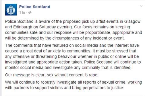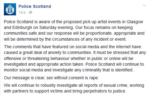 @policescotland calm, proportionality, sex w/out consent=rape & will continue working on problem#RooshvOUT pic.twitter.com/k4SW56Ax6U