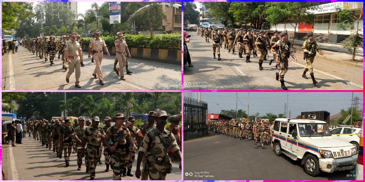 आगामी विधानसभा निवडणूक २०१९ च्या अनुषंगाने कल्याण परिमंडळ-3, बाजारपेठ हद्दीत रूट मार्च घेण्यात आला. सदर ठिकाणी बाजारपेठ पोलीस ठाण्याचे अधिकारी, कर्मचारी, होमगार्ड, CISF आणि SRPF चे अधिकारी व कर्मचारी रूट मार्चमध्ये सहभागी झाले.