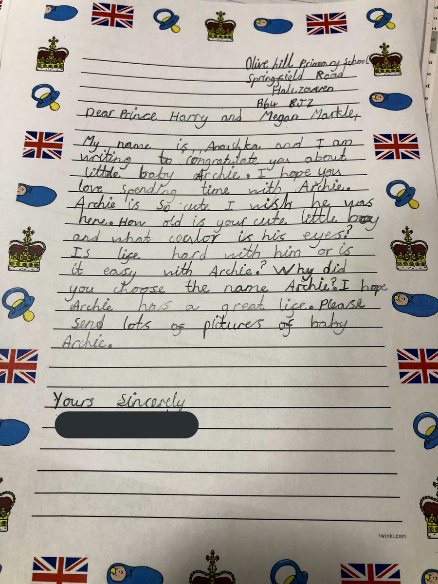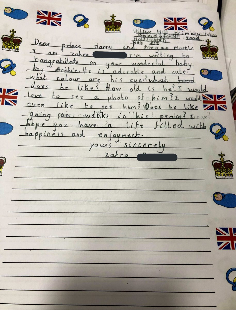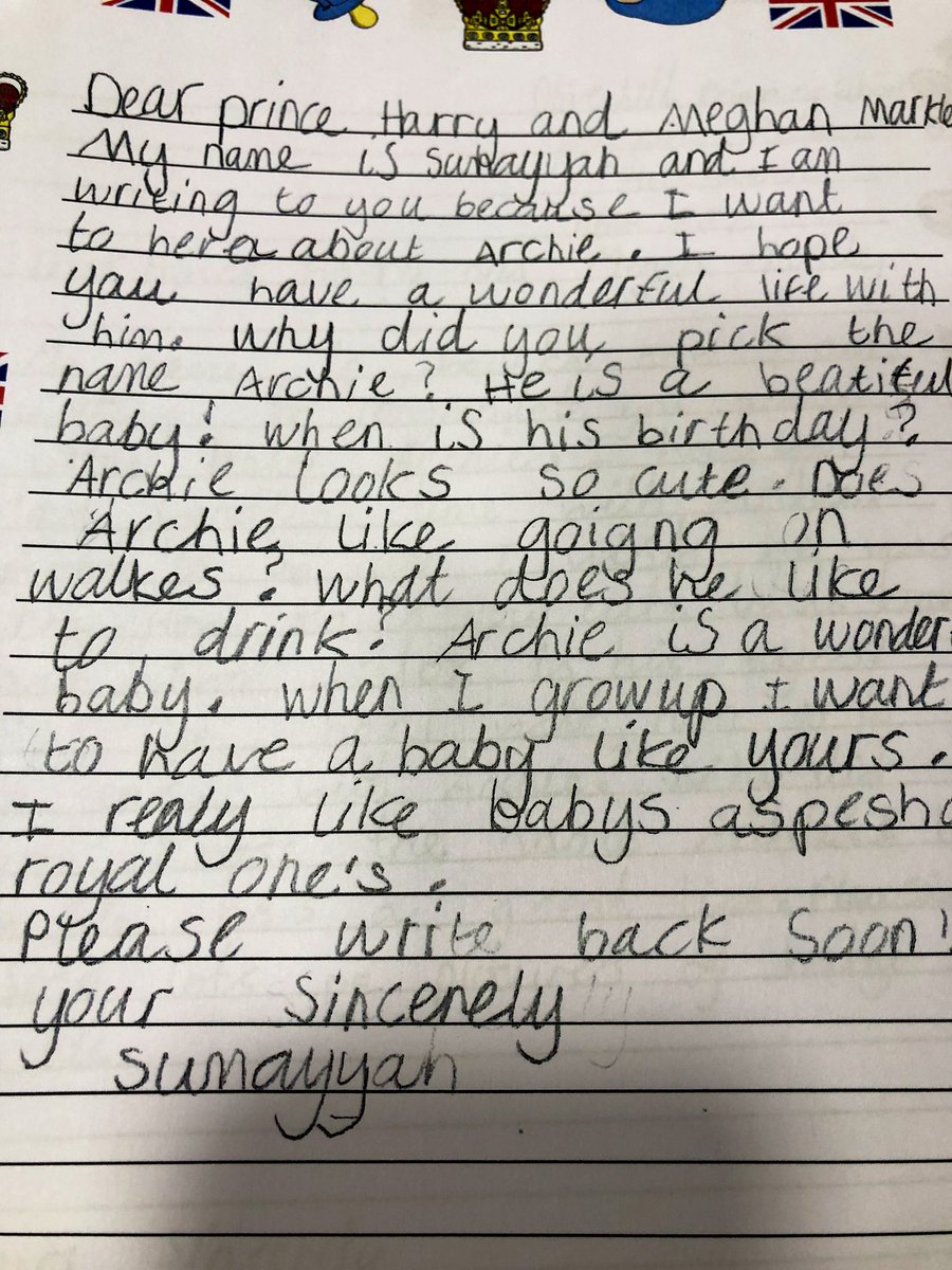 Our year 2 children have spent the morning writing their congratulations to the Duke and Duchess of Sussex.