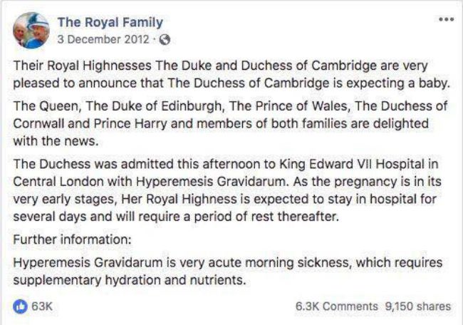 7 year ask today, the Palace announced that Prince William & Duchess Kate were expecting their 1st child! The couple were forced to announce the news early as Kate has hosplized with Hyperemesis Gravidarm.