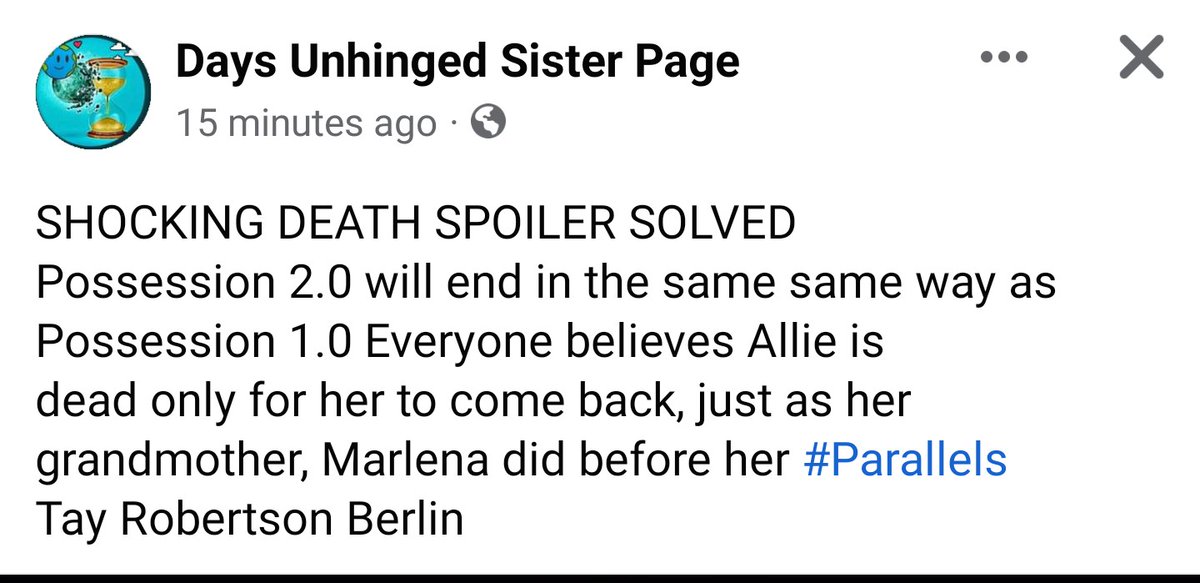 From Days Unhinged Sister Page. It is very possible...but Allie is not fully possessed like Marlena was back in 1995. White eyes. Marlena's health was failing during that particular exorism. Her soul was gone. Allie is still fighting back.