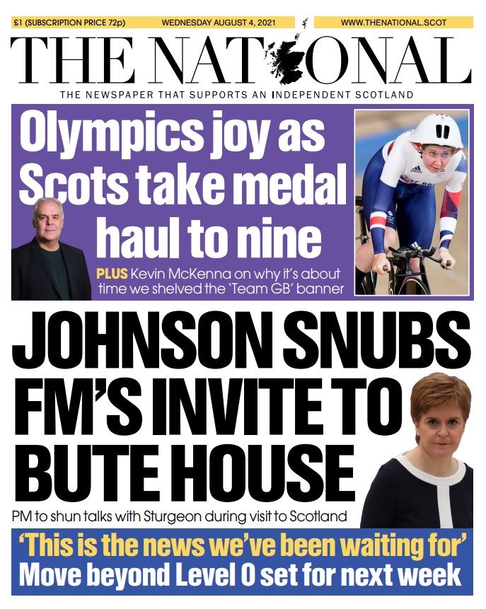 #RunningScared#NoFridgesAvailable Boris Johnson rejects Nicola Sturgeon's offer to meet during PM's visit to Scotland and Olympics medal haul rises to nine for Scotspic.twitter.com/hnzdLECBXo